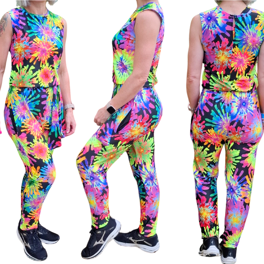 The Sea Flower Jumpsuit is your all-in-one outfit for movement and fun. Featuring neon sea-inspired florals on a sleek black background, this vibrant piece blends comfort and performance with striking style.